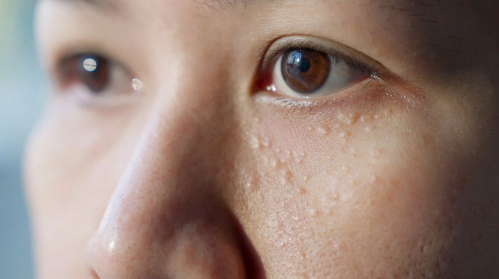 Milia adalah benjolan kecil berwarna putih atau kuning pucat yang biasanya muncul di area wajah seperti sekitar mata, pipi, atau hidung. Milia terbentuk karena sel kulit mati dan keratin terperangkap di bawah permukaan kulit.